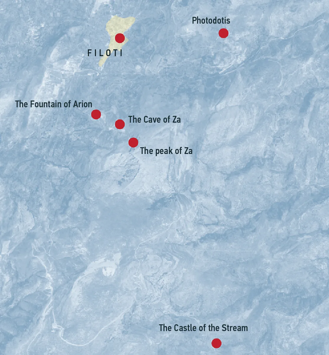 Central Square (“Gefyra” – Bridge) • Church of Holy Mary • Lahanario • Barotsi Castle • Fasolas • Theonas’ traditional grocery store • Greek Numismatic Museum • Back to Gefyra